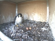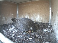 In der zweiten Maihälfte hat das neue Weibchen begonnen, fest auf den alten Eiern zu brüten. Möglicherweise ist bei diesem Weibchen der Brutinstinkt erwacht, leider ist bis jetzt jedoch kein neues Ei dazu gelegt worden. Ob in diesem Jahr noch Nachwuchs zu erwarten ist, ist eher unwahrscheinlich.