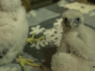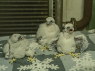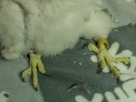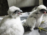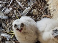 Am 13. Mai fand die Beringung von drei gesunden jungen Falken statt, wie auch in den Jahren zuvor wurde sie von Ralf Müller vom Arbeitskreis "Wanderfalkenschutz e. V." durchgeführt. Zwei der jungen Falken sind männlich, eines ist weiblich. Bei dieser Gelegenheit wurde die Kamera leicht gedreht, so dass sie den Vorsprung des Falkennests im Blick hat, auf dem die Falkenjungen in den nächsten Wochen ihres Lebens häufiger sitzen werden.
