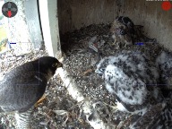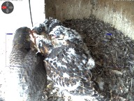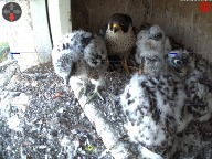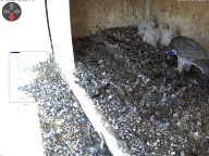 Ab dem Zeitpunkt an dem sich die Küken aus dem Ei gekämpft hatten begann für die Elterntiere die anstrengende Zeit der Nahrungsbeschaffung für ihre nimmersatten Jungen. Es mussten täglich mehrere Beutetiere herangeschafft und an den Nachwuchs verfüttert werden. Mitunter auch untypische Beute, wie z.B. eine Maus. Das Nahrungsangebot war trotz trockener Wetterperiode gut genug um vier Junge zu versorgen. Trotzdem zeigte sich bei einem der Jungvögel ein deutlich langsameres Wachstum als bei seinen Geschwistern.