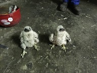 Am 09.05.2021 fand die Beringung durch Ralf Müller Mitglied des Arbeitskreises Wanderfalkenschutz e. V. mit Unterstützung der Werksmitarbeiter am Nistplatzstandort, wie in jedem Jahr routiniert und problemlos, statt. Beide Küken waren männlich (Terzel).